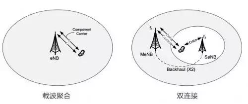 3GPP R12版本中提出了LTE双连接(Dual Connectivity)技术,它类似于R10版本提出的LTE-A载波聚合技术,但两者在本质上有不同之处: