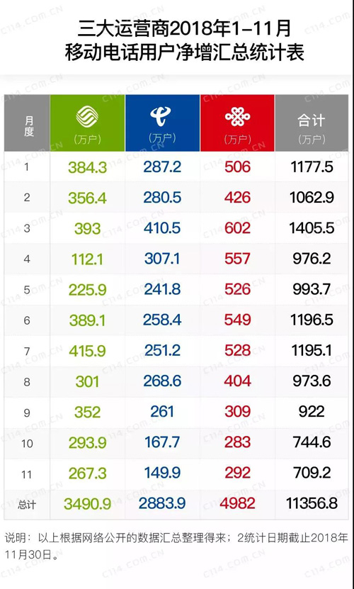 我们可以直接从工业和信息化部网站公布的数据得知标题所示的结论。2018年1-11月,电信业务收入累计完成11981亿元,同比增长2.9%,增速较1-10月提高0.2个百分点;电信业务总量完成57844亿元,同比增长139.2%,增速较1-10月回落0.6个百分点。如果考虑到前十一个月,移动用户、宽带户和IPTV用户累计净增长分别超过1.41亿、5674万户和3114万户的大前提,那么通信行业通过拉新而获得的收入规模也是非常庞大的。