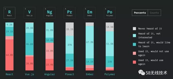 图四:stateofjs 2018 调研报告 - Front-end Frameworks