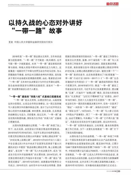 在这一背景下,讲清 "一带一路 "倡议正在重塑中国在世界经济版图中的角色与位置的故事,讲清 "一带一路 "从内到外全方位地改变中国经济的