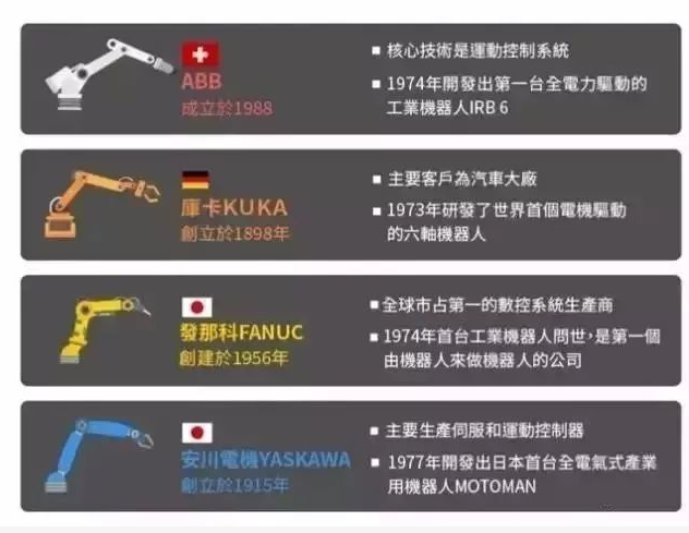 发那科、ABB、安川、库卡—4大机器人品牌大对比!从某种意义上来说它们是竞争对手,但是真正了解它们各自的机器人产品之后,你会发现其实它们