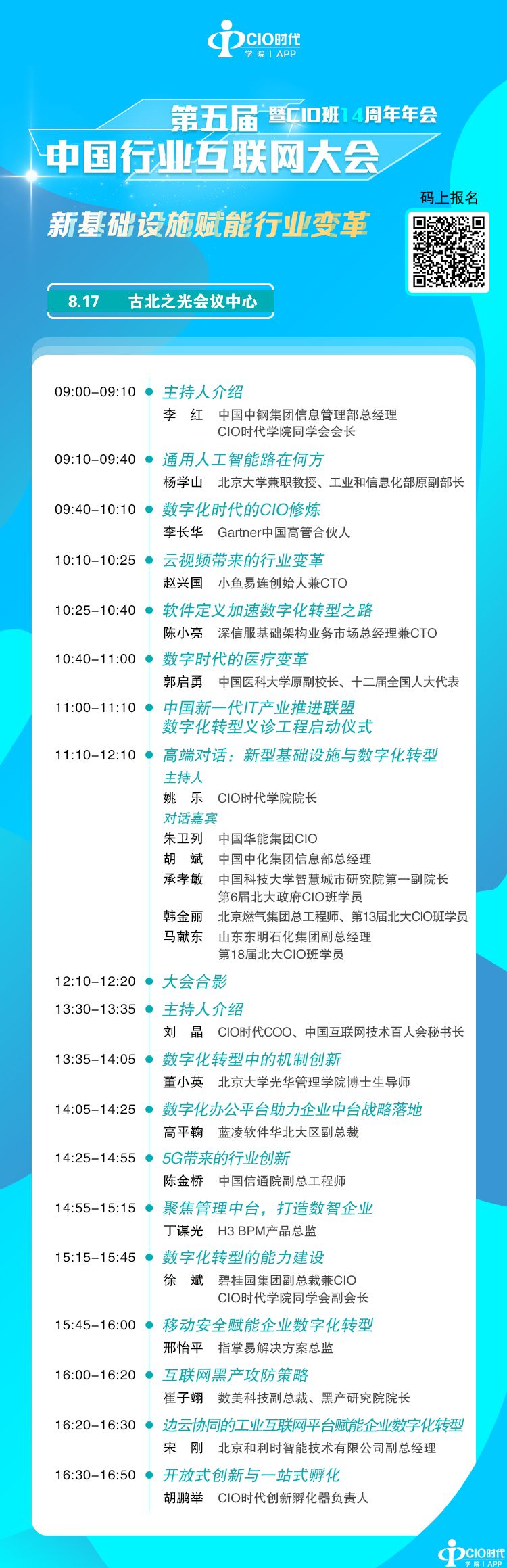 议程重磅发布:第五届中国行业互联网大会暨CIO班14周年年会