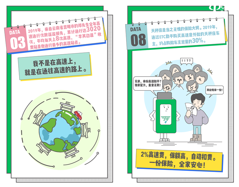 2019年,来自云南省昆明市的车主邓先生全年累计高速通行次数达3020次,平均每天就要使用ETC高速通行8次,节省了高速过站的时间成本。“同时,高速意外险性价比非常高,每次只需2%高速费,就能给出行一份安心,最主要的还是自动扣费,很方便。”来自四川成都的车主郑先生表示。
