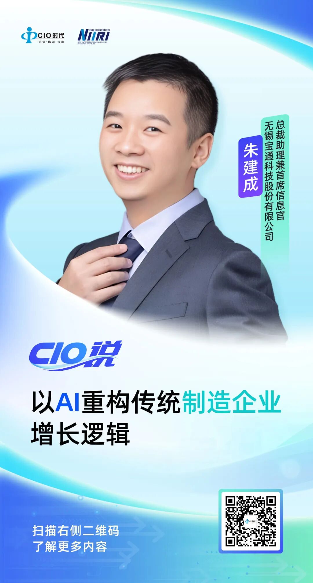 现就职于无锡宝通科技股份有限公司,任总裁助理兼首席信息官。曾就职于宝钢集团东方钢铁电子商务有限公司、上海宝信软件股份有限公司、尚德电力控股有限公司、上海复星高科技(集团)有限公司,历任系统架构师/项目经理、高级项目经理、集团IT经理、集团IT执行总经理等职;拥有超过20多年的资深信息化建设与数字化转型领航经验,主导并成功实施了多项数字化战略项目,涵盖数字化战略规划、数字化运营、业务流程体系优化等诸多领域,具备丰富规划、实施与管理经验;拥有超过15年制造业数字化转型管理经验,拥有超过5年大型多元化综合投资集团数字化建设管理经验;近5年来,专注于制造业民营上市公司数字化转型征程,引领企业从零开始构建数字化体系,直至实现规模化应用,并持续保持行业内的数字化领先地位。2023年荣获中国煤炭工业(省部级)科学技术二等奖;截止至2025年,拥有授权发明专利3项、技术成果鉴定3项(1项国际领先,2项国际先进)。