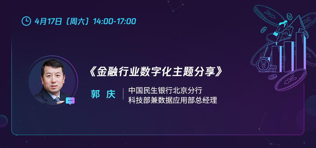 分享大咖:郭庆 中国民生银行北京分行科技兼数据应用部总经理,腾讯云TVP金融行业大使.