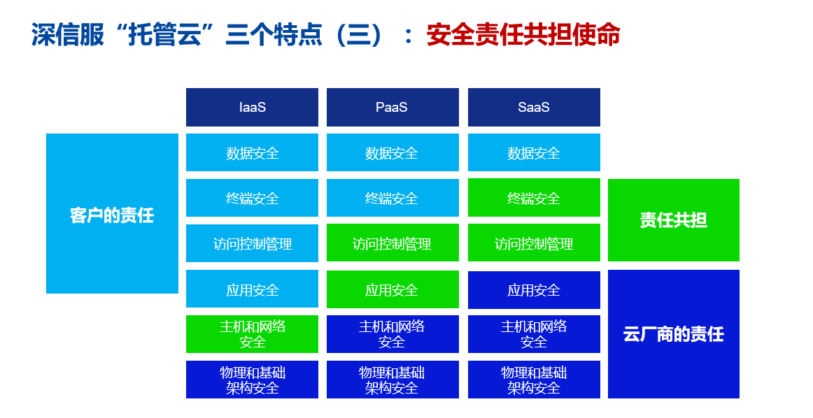 第三是安全责任共担,有些安全责任是客户自己的安全责任,有些责任是服务商的安全责任,中间还有些双方没有界定那么清楚,我们希望共担责任,由我们扛更大的责任。