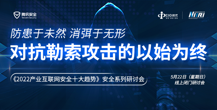 2022 年 5 月 22 日,CIO 时代、新基建创新研究院将携手腾讯安全,共同举办《2022 产业互联网安全十大趋势》安全系列线上研讨会(第三