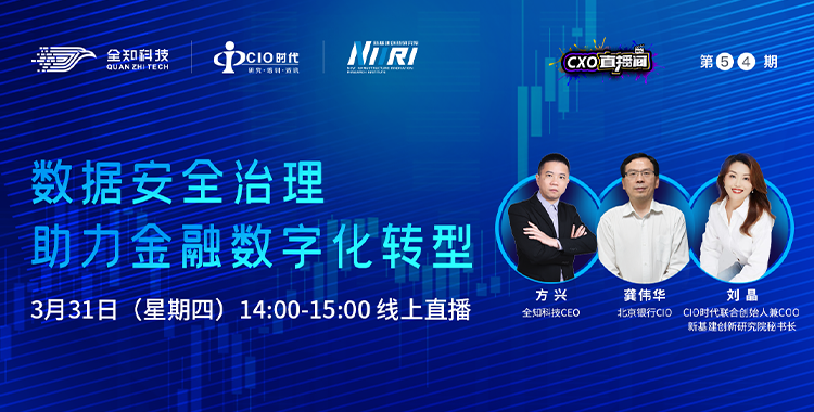 为此,CIO时代、新基建创新研究院与全知科技共同发起主题为“数据安全治理助力金融数字化转型”的第54期CXO直播间,邀请技术专家坐客直播间,