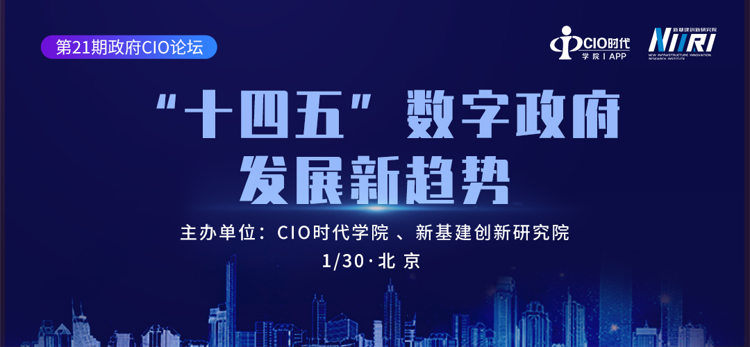 2021年1月30日,由CIO时代学院、新基建创新研究院共同举办的“第21期政府CIO论坛”将在北京隆重召开,本次盛会围绕主题 "十四五”