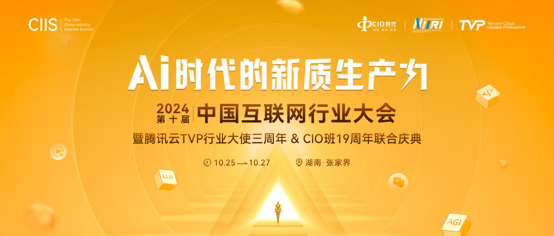 2024年10月25日-27日,由CIO时代、腾讯云TVP联合主办,新基建创新研究院作为智库支持的国内年度最大规格CIO盛会——“AI时代的新质生产力 |20