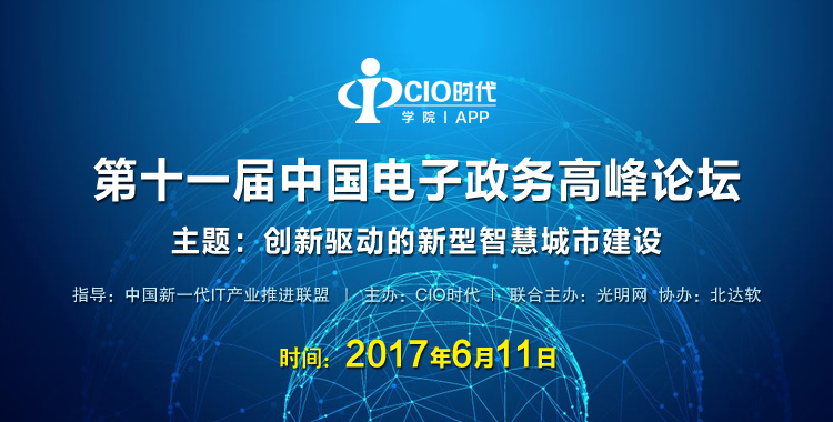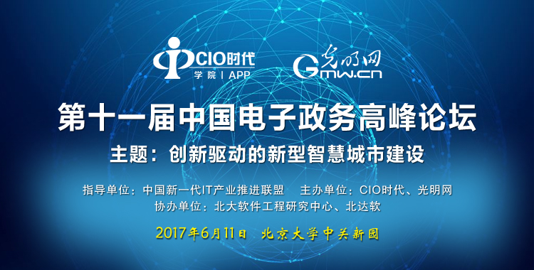 2017年6月11日,由CIO时代与光明网联合主办,中国新一代IT产业推进联盟指导,北达软协办的“第十一届中国电子政务高峰论坛”将于北京大学中关