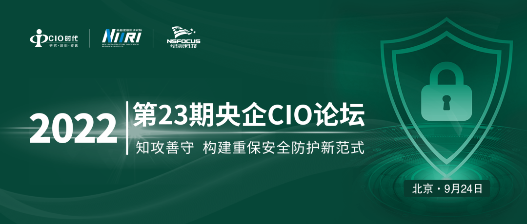 2022年9月24日,由CIO时代与绿盟科技联合主办,新基建创新研究院作为智库支持的第23期“央企CIO论坛”,在北京顺利举办。公安部网络安全保卫局