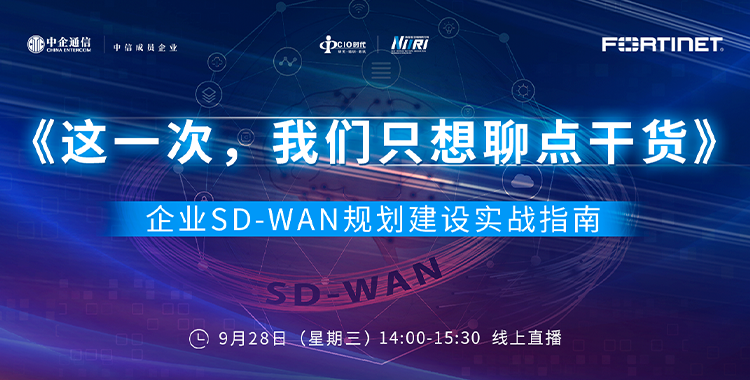 9月28日,CIO时代、新基建创新研究院将携手中企通信与Fortinet共同打造“《这一次,我们只想聊点干货》 —— 企业SD-WAN规划建设实战指南”