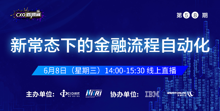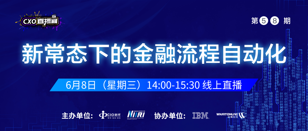6 月 8 日,CIO 时代、新基建创新 研究院将邀请 IBM 专家和知名银行 CIO 做客 CXO 直播间,共同为把脉金融行业数字化转 型,分享