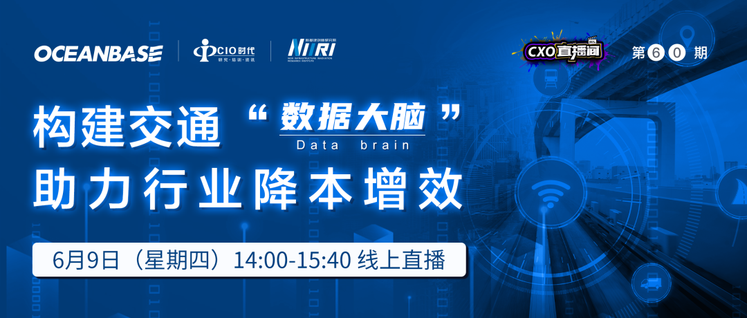 6月9日,CIO时代、新基建创新研究院将邀请OceanBase和知名交通企业CIO做客第60期CXO直播间,共同探讨交通行业数据和数据库的应用之道。