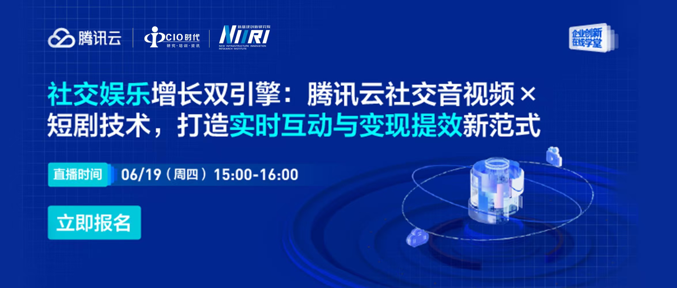 6月19日,腾讯云将带来一场聚焦 “社交娱乐增长双引擎:腾讯云社交音视频 × 短剧技术,打造实时互动与变现提效新范式” 的直播,为行业从