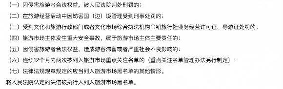2018年末,文化和旅游部官方发布消息,《旅游市场黑名单管理办法(试行)》公布实施